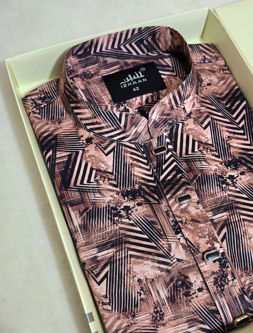 - Breathtaking embroidery embellishing the collar, upper chest, and cuffs