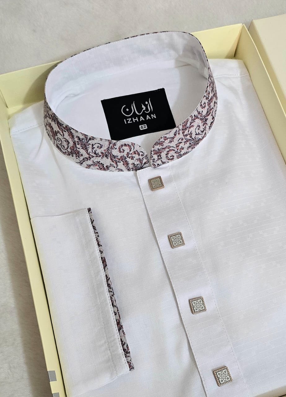 - Breathtaking embroidery embellishing the collar, upper chest, and cuffs