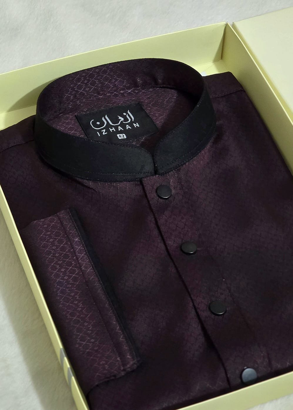 - Breathtaking embroidery embellishing the collar, upper chest, and cuffs