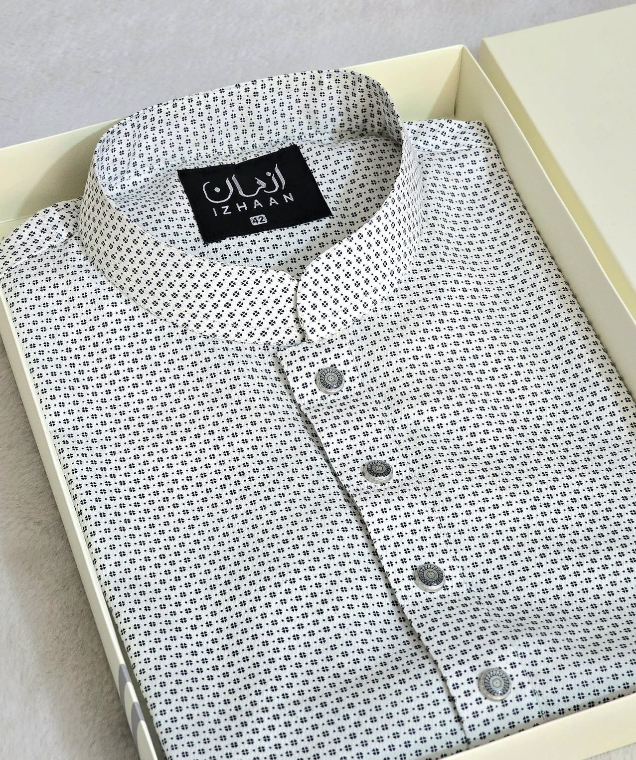 - Breathtaking embroidery embellishing the collar, upper chest, and cuffs