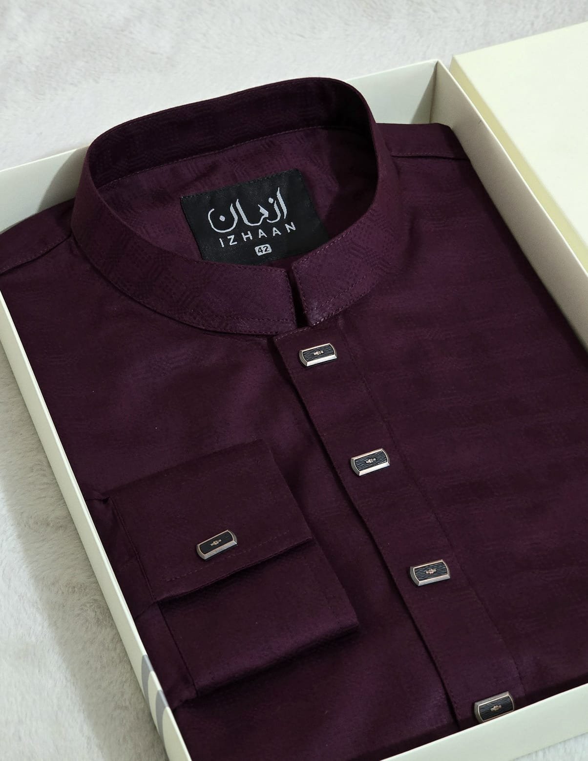 - Breathtaking embroidery embellishing the collar, upper chest, and cuffs