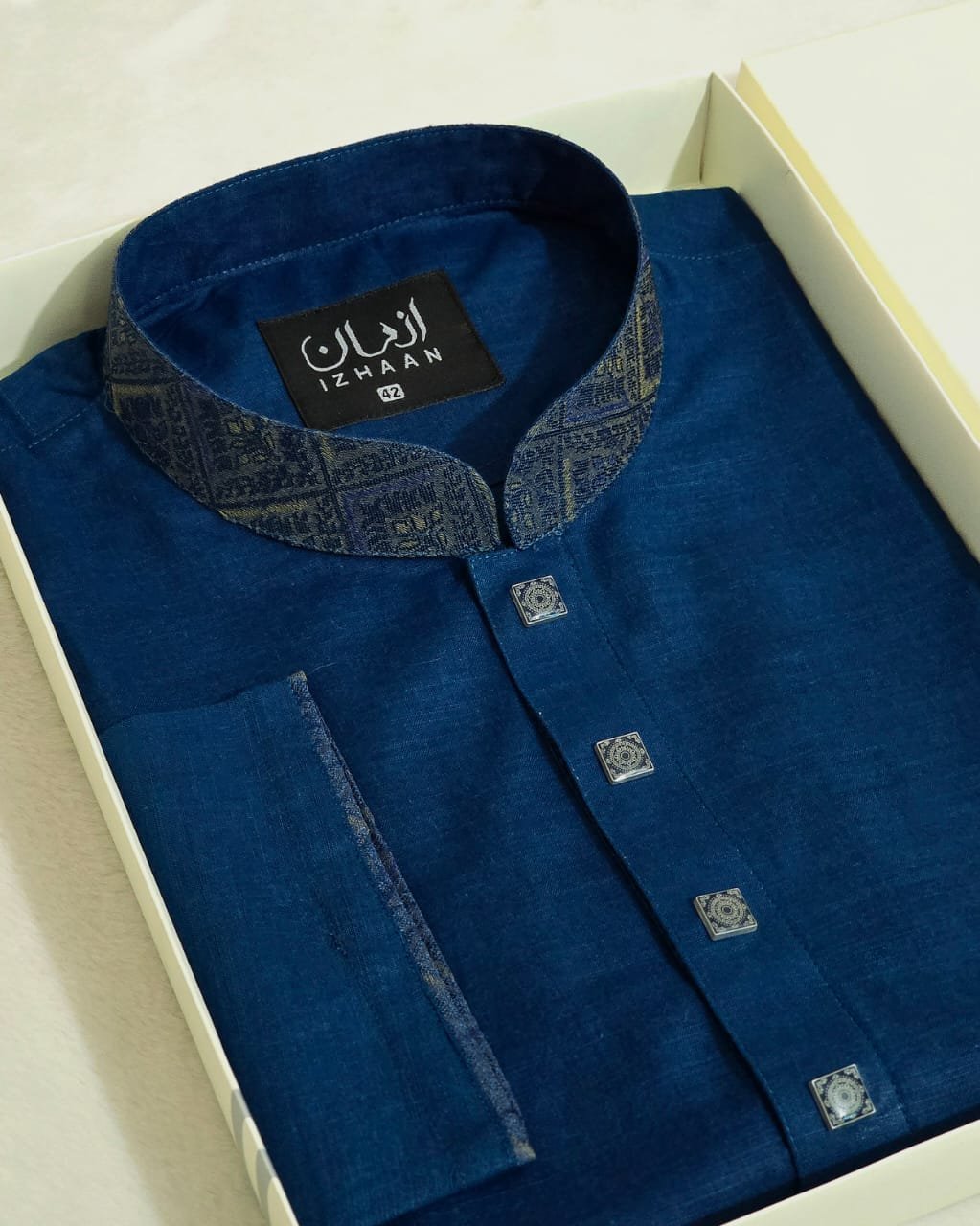 - Breathtaking embroidery embellishing the collar, upper chest, and cuffs
