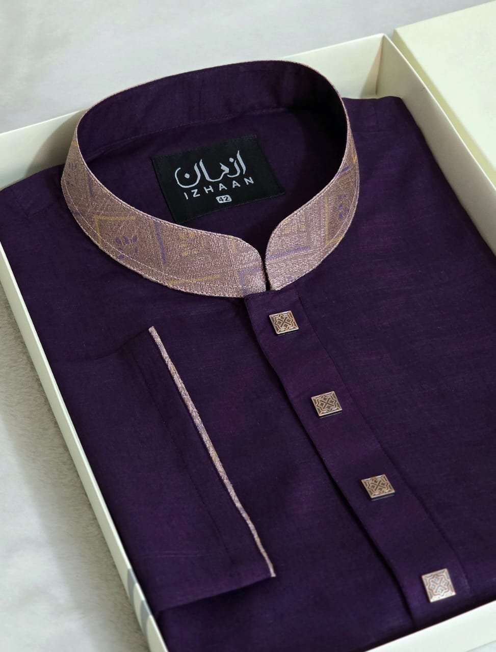 - Breathtaking embroidery embellishing the collar, upper chest, and cuffs