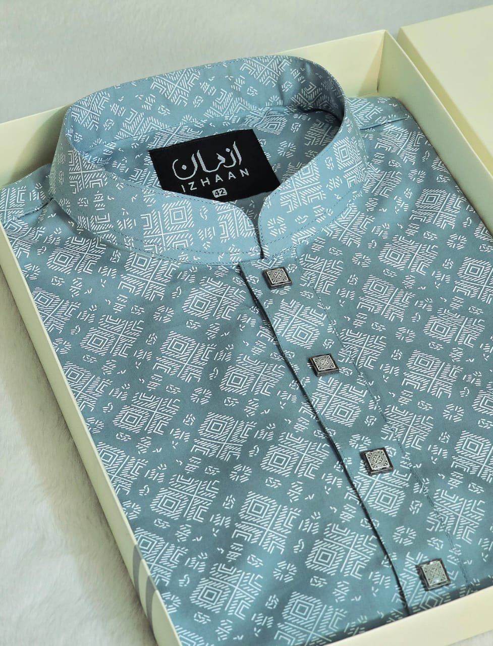 - Breathtaking embroidery embellishing the collar, upper chest, and cuffs