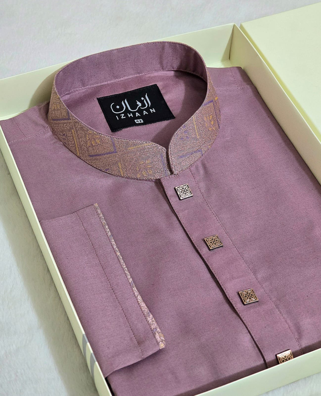 - Breathtaking embroidery embellishing the collar, upper chest, and cuffs