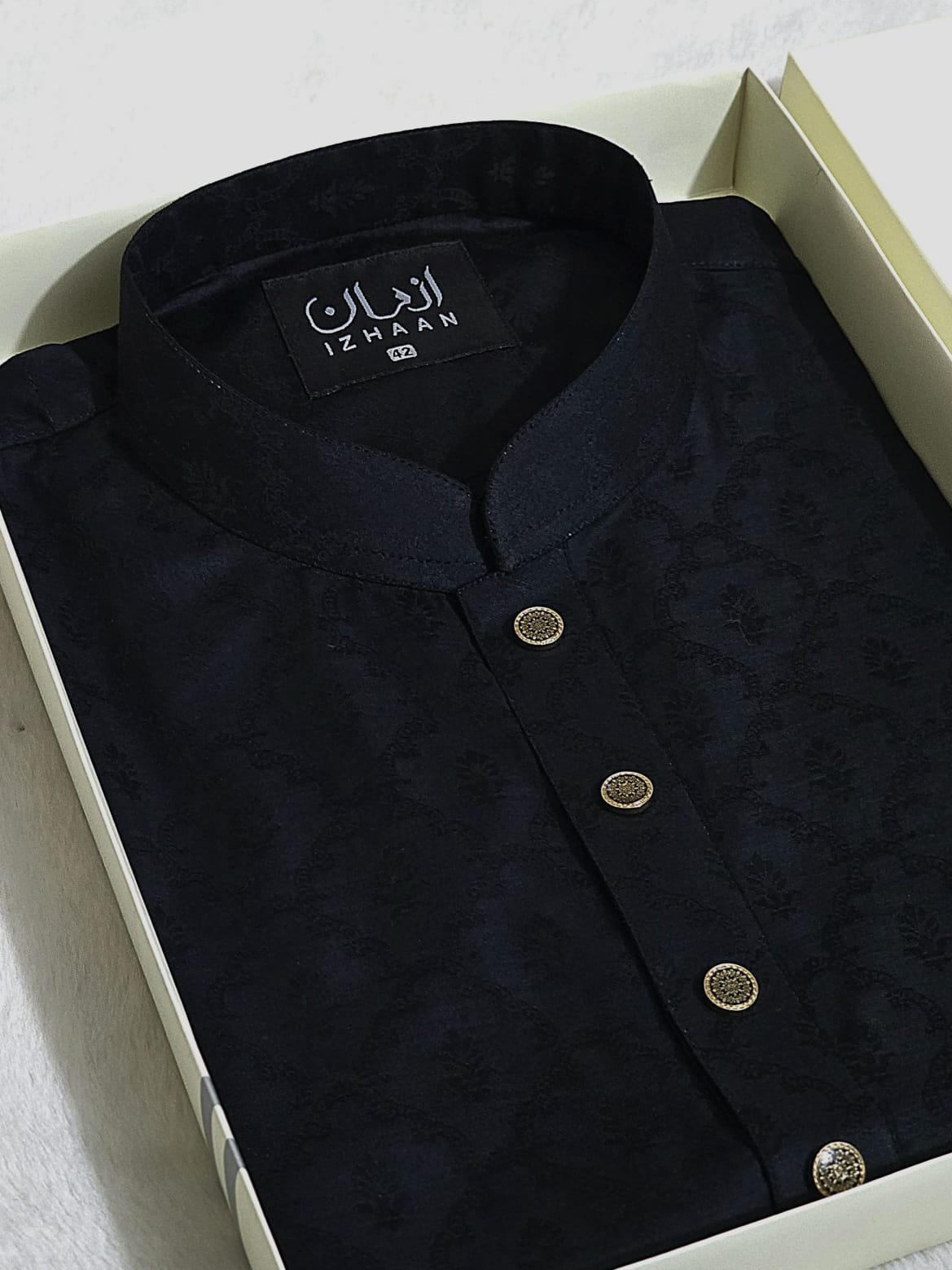 - Breathtaking embroidery embellishing the collar, upper chest, and cuffs
