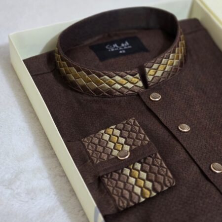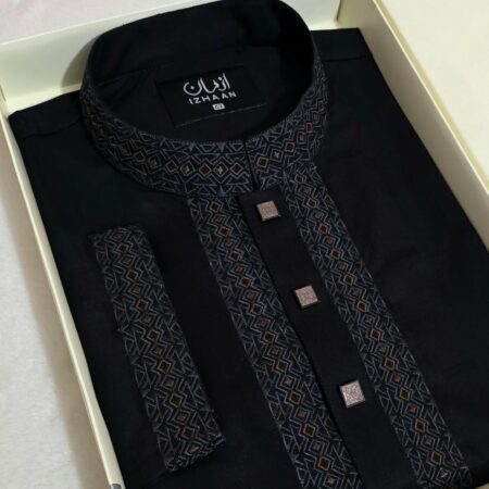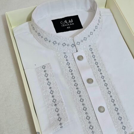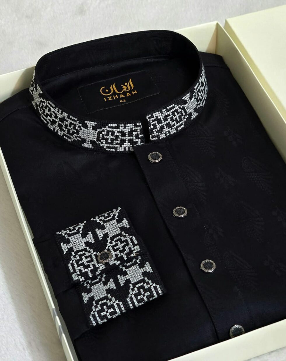 • Breathtaking embroidery embellishing the collar, upper chest, and cuffs