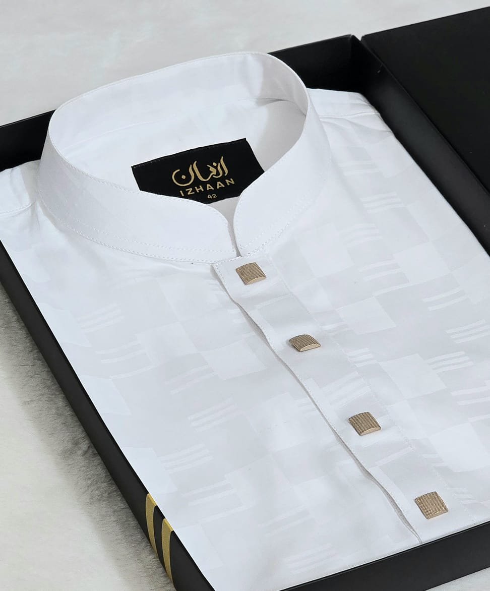 - Breathtaking embroidery embellishing the collar, upper chest, and cuffs