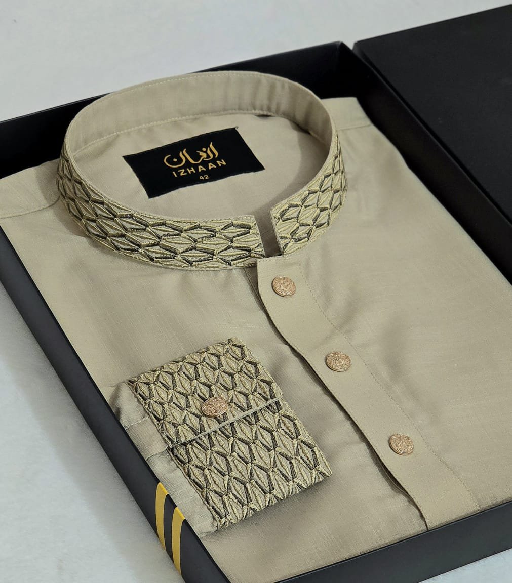 • Breathtaking embroidery embellishing the collar, upper chest, and cuffs