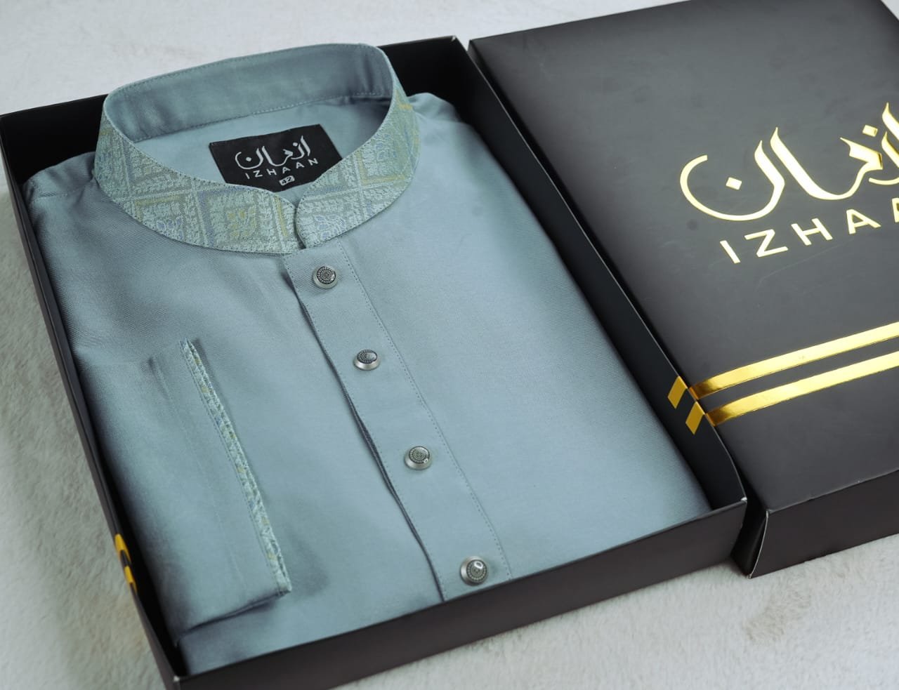 - Breathtaking embroidery embellishing the collar, upper chest, and cuffs