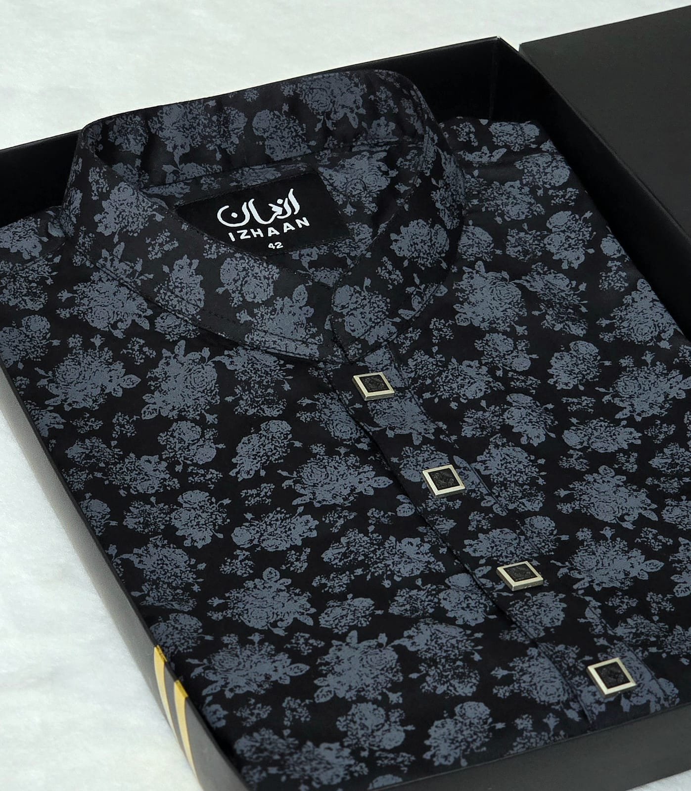 - Breathtaking embroidery embellishing the collar, upper chest, and cuffs