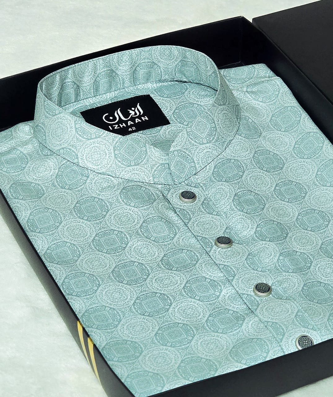 - Breathtaking embroidery embellishing the collar, upper chest, and cuffs