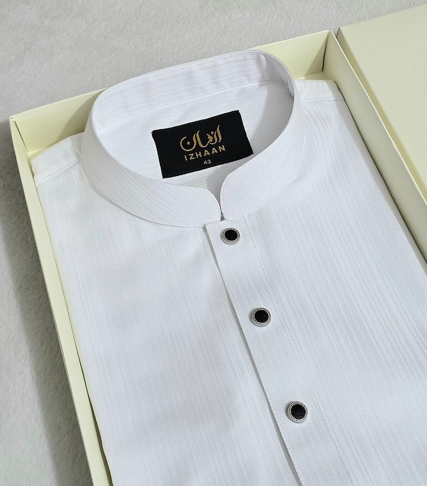 - Breathtaking embroidery embellishing the collar, upper chest, and cuffs
