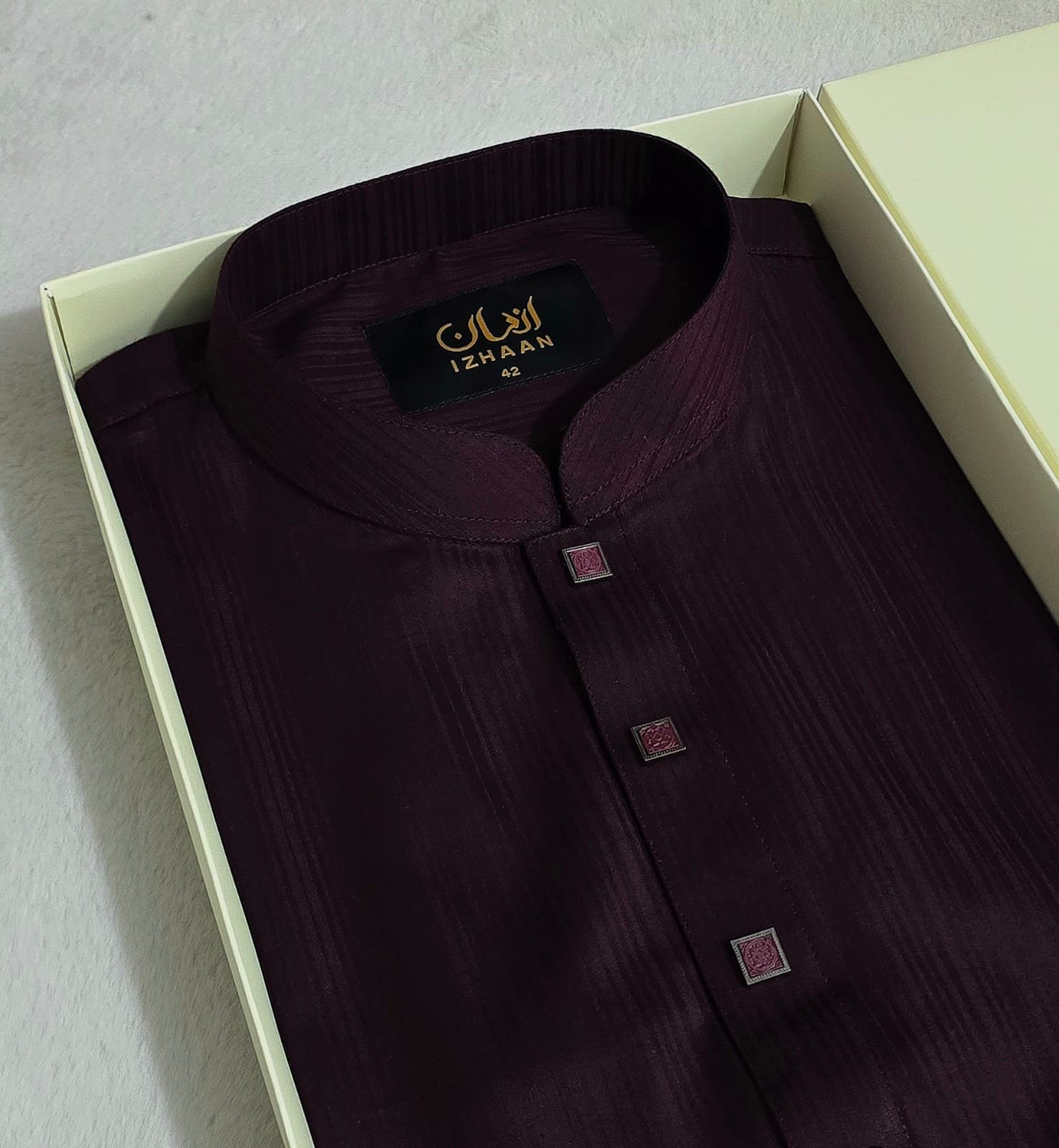 - Breathtaking embroidery embellishing the collar, upper chest, and cuffs