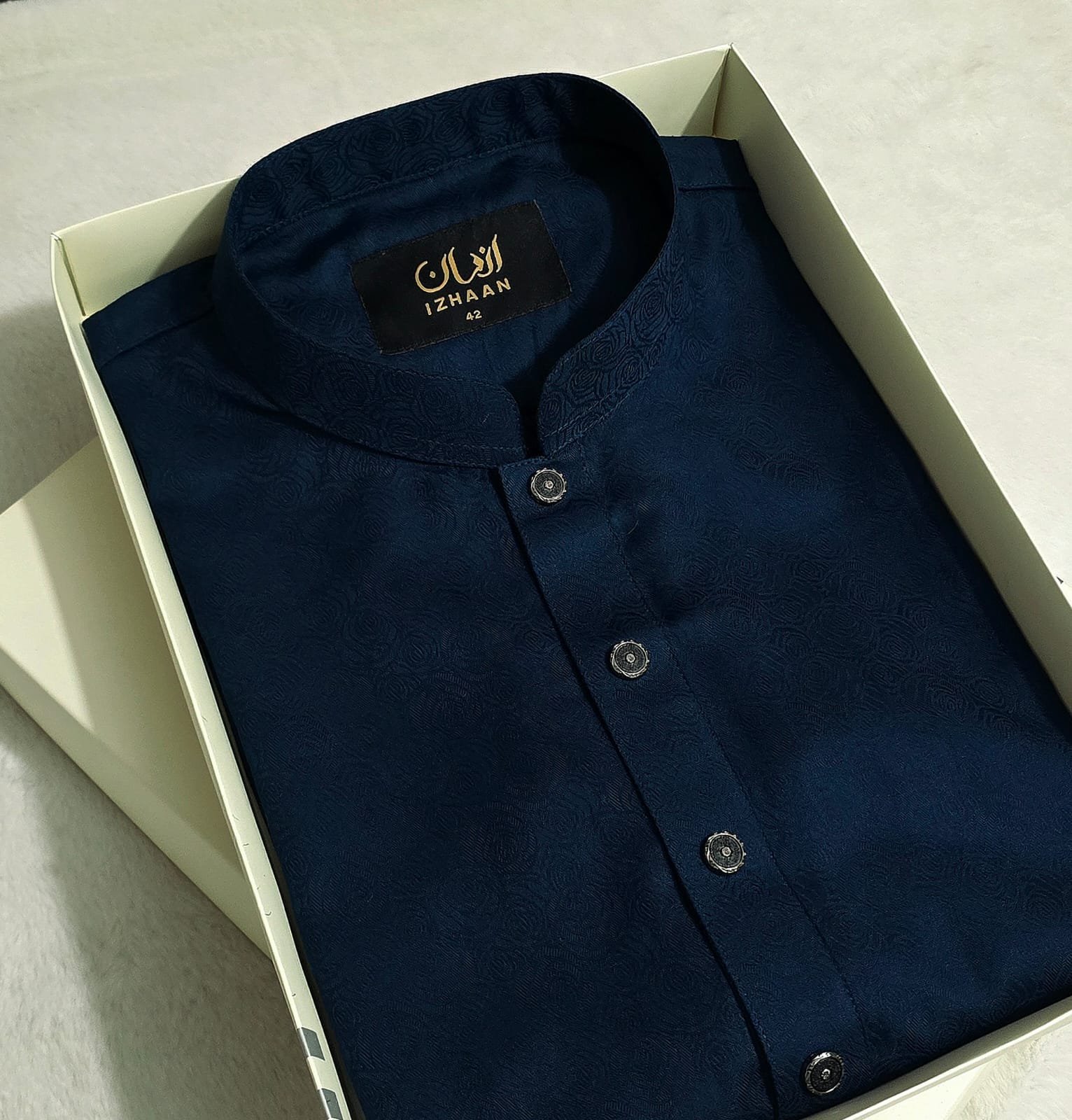 - Breathtaking embroidery embellishing the collar, upper chest, and cuffs